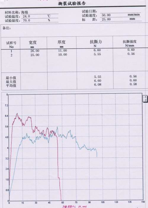 海棉拉伸撕裂試驗報告內(nèi)容:①抗撕力 ②抗撕強度