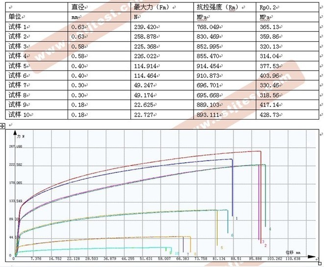 不銹鋼燒結(jié)網(wǎng)鋼絲拉伸試驗(yàn)報(bào)告: