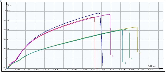 備 注:試樣1~3為普通厚紙板,試樣4~6為鍍鋅紙板。要求求取最大負(fù)荷(Fmax)、斷裂伸長率