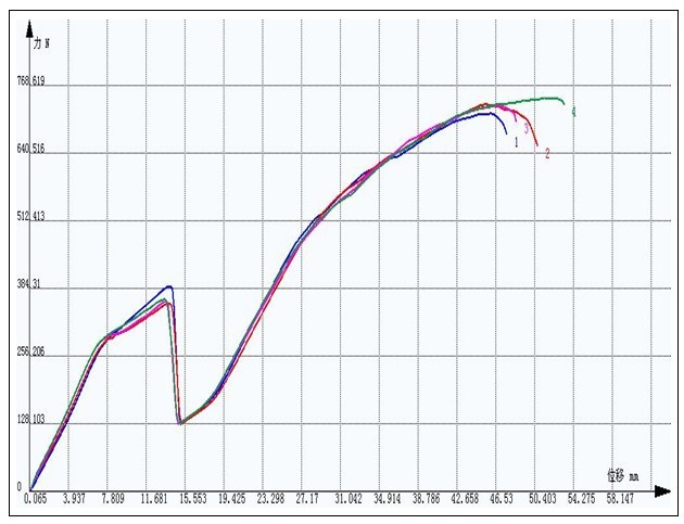 汽車用氣門嘴拉脫試驗數(shù)據(jù)曲線:
